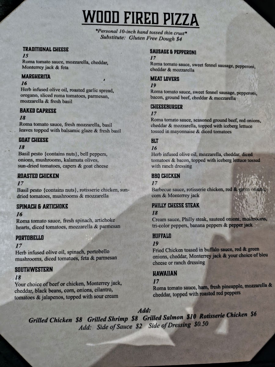Grilled ham, fresh spinach, ricotta, basil pesto, diced roma tomatoes & mozzarella (cotains nuts)
